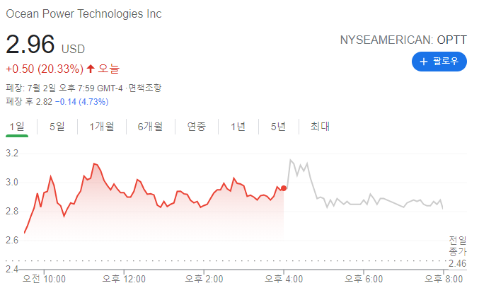 [미국주식] 오션 파워 테크놀로지 OPTT 주가 전망 간단 분석 및 한줄평주식/급등주 2021. 7. 5. 21:34